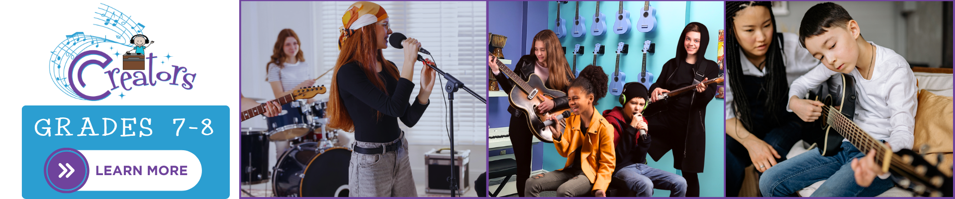 In Stage 3 of our Performing Artist Program, your young Player (student in grade 5 or 6) takes their musical abilities to the next level. Players will join the ensemble group experience to explore playing together as a band, discover multiple genres, develop performance skills, and dive into music technology. Throughout this stage, players will work with a basic blues progression and build the skills required to progress to Stage 4: Creators.